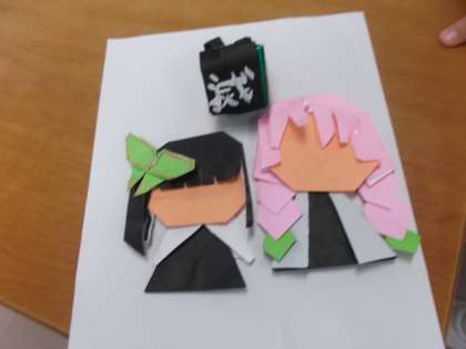 今はやりの「きめつのやいば」のキャラクターをおりがみで作ったり、キャンディをおりがみで作ったりしています。