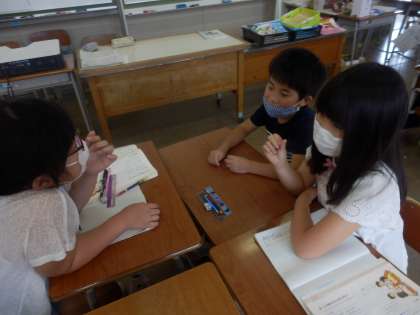いろいろなテーマが出てきました。「天瀬の森について」や「学校について」「職員室の先生について」なの様々です。中には、「担任のI先生について」という班もありました。どんな完成になるのでしょうか?気になります。