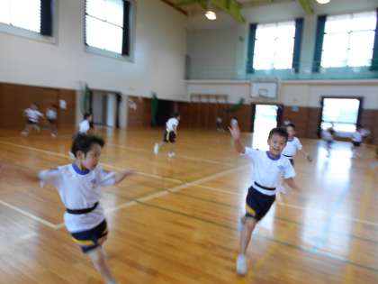 2年生は、体育科で「鬼あそび」に取り組んでいます。今日は「しっぽとり」をしました。チームで作戦を考え、思いっきり走り回りました。
