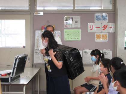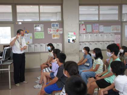 総合的な学習の時間に、現在も売薬さんとして働いておられる方から話を聴かせていただきました。実際に、道具を見たり触ったりしながら学習をしました。