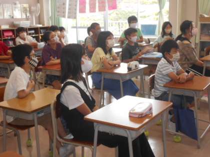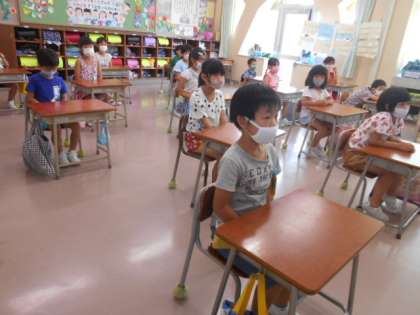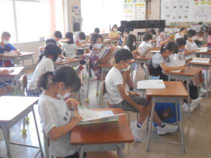 今日から2学期。「誕生日にプレゼントをもらったよ」「家でバーベキューをしたよ」等、短い夏休みでしたが、楽しかった様子が伝わってきました。夏休みの宿題がなかったにもかかわらず、自主的に、火力発電・水力発電等、発電の仕組みについて調べてきた子供もいました。「風力発電は風で電気が起きていいけど風が止まったら発電できないし、いくつか組み合わせるのがいいと思う」と考えを話してくれました。調べたことから自分の考えをもてることは、とてもすてきなことだと思います。どの子供にとっても、充実した2学期になるよう、取り組んでいきます。