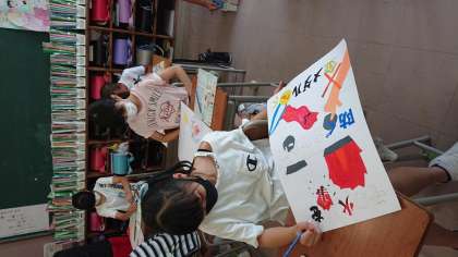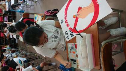 みんなが一生懸命に防火ポスターを描いています。ステキな作品になるようにがんばります。
