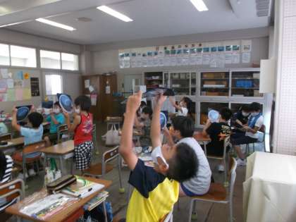理科は、夏に見える星座を学習しています。今日は、星座早見板を使って、星の見つけ方も学習しました。星座早見板を使えば、1年中の星空を調べることができます。自分の誕生日や好きな日の星座もチェックしました。