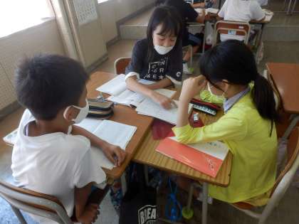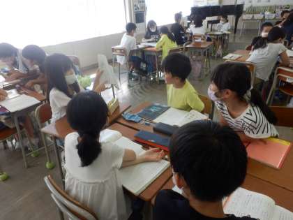 国語では、いろいろな意味をもつ言葉について学習しました。例えば「みる」「とる」は、どんな言葉のあとに付けるかによって、意味が違います。辞典や教科書を参考に、学習を進めました。