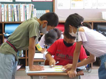 今日の音楽科の時間には、チームでリズムと楽器を決めてリズムアンサンブルをしました。最後には、前で演奏を披露しました。