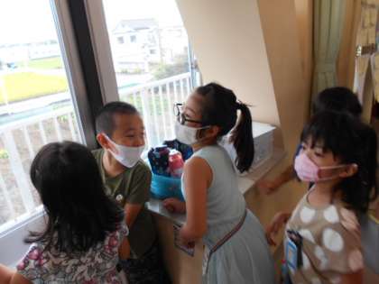 「あそこにはワニがいる!」と、いろいろなものを見つけていました。風が強く、すぐに雲の形が変わるので、子供たちも驚いていました。