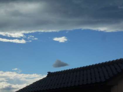 朝から、子供たちが窓の前で外を指さし、「ロケットー!!」と声を上げました。見てみると、ロケットの形をした雲が!