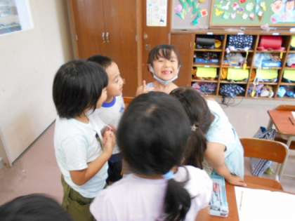 給食の後に、歯が抜けた友達がいると、すぐにみんなが集まります。「見せて、見せて!」「僕もこの歯、ぐらぐらだよ!」と楽しそうな子供たちの姿に、ほっこりと和みました。