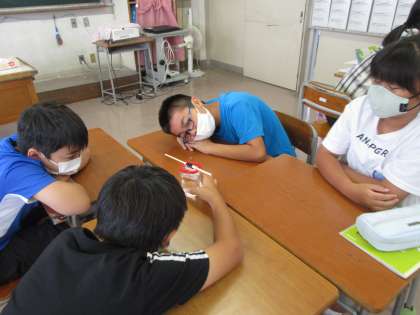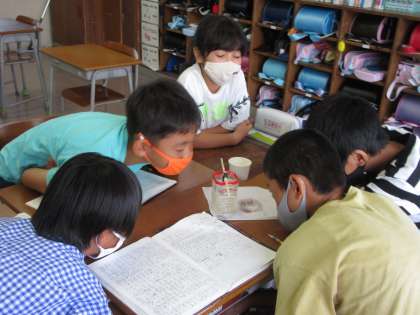 理科の学習では、先週から物のとけ方の学習が始まりました。塩が水にとける様子を観察しました。明日は、とけた塩の行方を実験で確かめます。