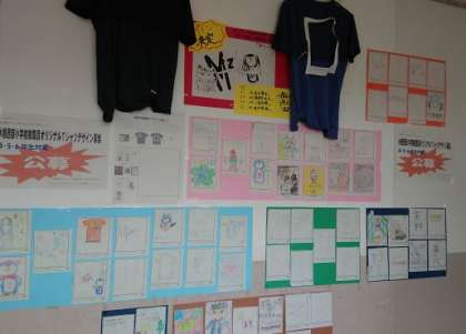 運動会の教職員の団結を目指し、教職員オリジナルTシャツデザインを4年、5年、6年生を対象に公募しました。64点の応募がありました。どの作品も、水橋の特長や学校、運動会をイメージした個性豊かなものでした。教職員で協議した結果、甲乙付けがたく、6年SYさん、5年KHさん、HKさん、4年GRさんの作品を組み合わせたデザインに決定しました。教職員それぞれがシルクスクリーンという版画で自分たちで印刷します。運動会では、オリジナルTシャツを着て、応募してくれた皆さんの心意気を背負って、子供たちに負けないよう教職員も団結し、がんばります。