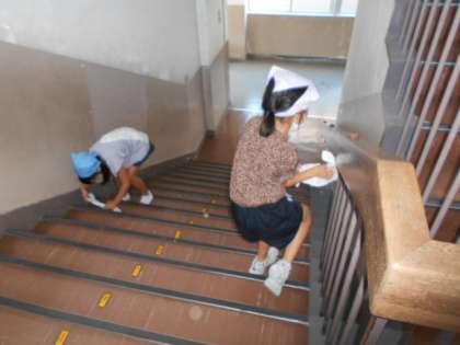 朝の清掃、やる気いっぱい!(1年生)