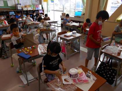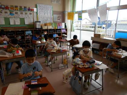うごく うごく わたしのおもちゃ(2年生) 公開日 2020/09/14 更新日 2020/09/14 2年生 身の回りの材料を使って、動くおもちゃづくりに取り組んでいます。うまくいかないときは、うまくいっている友達と比べて違いを見つけたり、自分で工夫したりしています。
