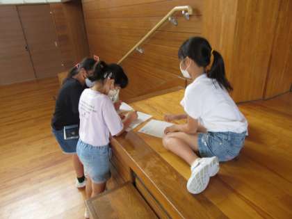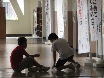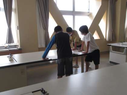 家庭科の時間によごれ探しをしました。床の端や手の届かないところには、汚れが多いことに気が付きました。できるだけ掃除をしようね。