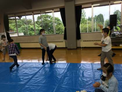 自分で作った竹とんぼを飛ばします。 みんなよく飛びます!デザインもステキ!