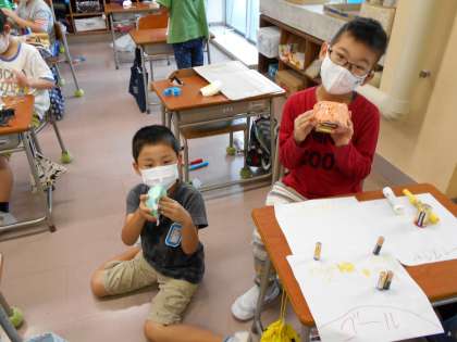 おもちゃがどんどんできてきました!子供たちの様子を見ていると、工夫することが楽しくなってきていることが伝わってきます!ゴムの付け方、穴の位置、容器の大きさ等いろいろ試し、比べ、考える姿が見られます。来週は、みんなで遊ぶ予定です。