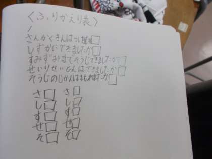「振り返りをするのは大切だから作ったよ。」と言いながら、しっかりと掃除の振り返りをしていました。
