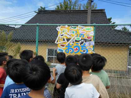 今日は、看板が設置されたので、みんなで見に行きました。自分の絵を見つけて、とても嬉しそうにしていました。