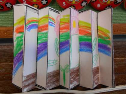 校長先生に「じぶんがうごく絵本」をおしえてもらいました。はじめに見たとき、とてもふしぎだなと思いました。じっさいにやってみると、とても楽しかったです。