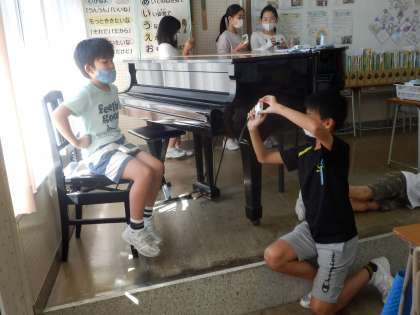きれいな風景や地域のお店、自然や家族など、いろいろな写真があり、とても楽しい時間でした。次に、友達をモデルにしたフォトセッションです。もう、気分は写真家です。背景や見え方えに気を付け、時にはポーズを注文しての撮影です。ノリノリです。