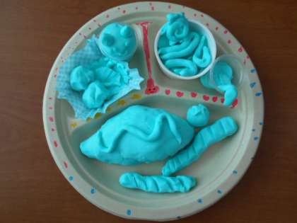 ねんどで ごちそうを つくるのが たのしかったです。