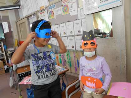 来週、完成の予定です。そして、10月の終わりに計画している学級のハロウィーン集会で身に付けて楽しみます!