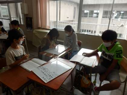 ごんが言った短い言葉や兵十の境遇などいろいろなことを基に考えています。各班の発表が楽しみです。