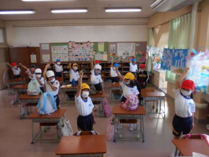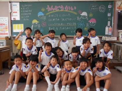 朝から、教室で「がんばるぞ、オー!」と気合いを入れ、競技や応援に元気いっぱい取り組みました。