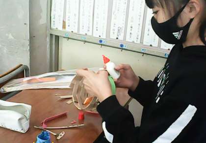 図工の「アミアミアミーゴ」をしています。いろいろな飾りを作って、とてもおしゃれにしている人がいました。「カラフルバック」や「まるまるカゴ」、「ボールカゴ」、いろいろな形があっていいですね!