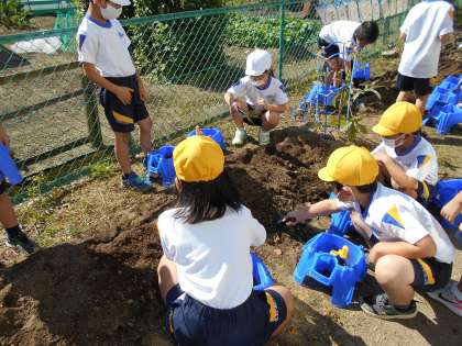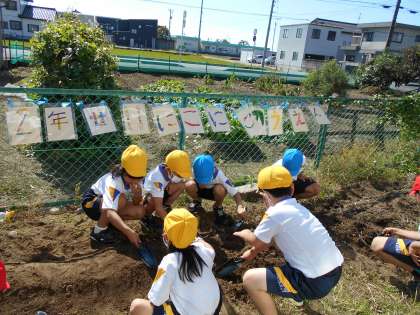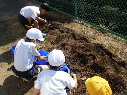 生活科の学習で冬野菜を育てることにしました。夏野菜を育てた経験を生かし、活動を始めました。油かすも肥料になることを調べた友達の意見を参考に、土に油かすを混ぜました。畝を作るのも上手になりました。植木鉢には「ラディッシュ」を植えました。