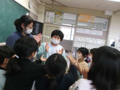 今日のお昼休み、教頭先生に遊んでもらって子供たちはとても嬉しそうです。