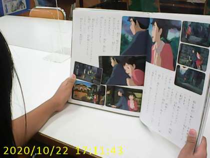 昼休けいに本を読んでいる人を見つけました。