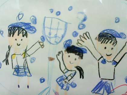 ともだちの えにっきを みました。たまいれの えが じょうずだなと おもいました。ぼくも、じょうずに えを かけるように なりたいです。