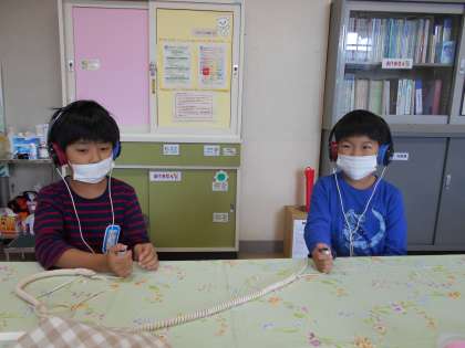 今日は、3年生と4年生の聴力検査を行いました。「ちょっと間違えた」と言っている子もいましたが、全員よく聞こえていました。検査を受ける姿勢も素晴らしかったです。