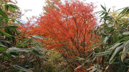 山道や山頂には、秋山の魅力があふれていました。足を止めて休むひととき。足下から見上げてみると、そこには美しい景色が待っていました。汗をぬぐって、笑顔になる子どもたちでした。