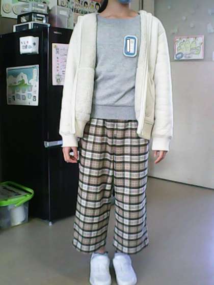 こんな日は、重ね着をして、寒いときは着て、暑くなってきたら1枚ぬげるような服装をすると良いですね。写真は、すてきな重ね着をしていた友達を撮りました。