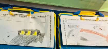 すてきな 歌声を聴きながら、すてきな絵を描く子供たちです。
