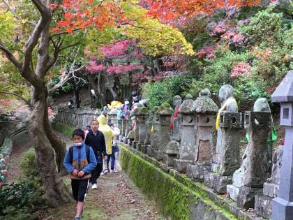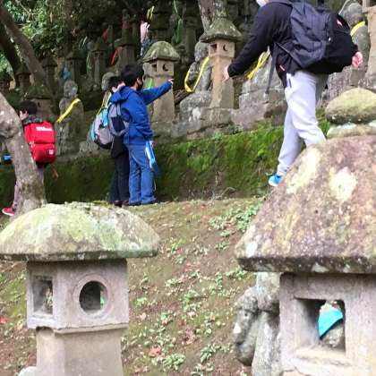 お地蔵様の顔を見たり頭上に手をかざしたりしました。
