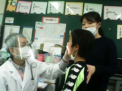 今日は耳鼻咽喉科検診でした。検診では、1m間隔に足形を貼り、保健室が密にならないようにしました。また、鼻と喉の検査までは、マスクを着用して行いました。どの学年も、静かに検診を受けていました。