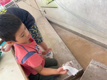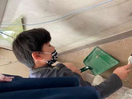 先生が何も言わなくても、「掃除をする!!!」と言って、すぐにぞうきんやほうきを持ってきて掃除をしてくれました。