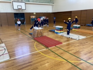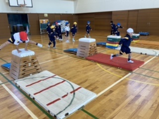 そして今日は、開脚跳びの練習の成果を披露しました。「上手だね」「きれいに跳んでいる」と拍手しながら、褒め合う姿が印象的でした。