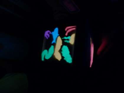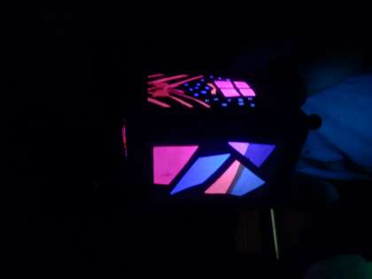 模様の大きさや色フィルムの色によっても見え方が違います。また、ライトは七色に光るので、ライトとフィルムの色の組み合わせによっても見える色が違います。これから完成する作品もとても楽しみです。