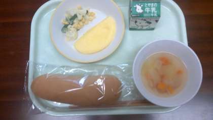 10月3日 今日のこんだて 公開日 2024/10/03 更新日 2024/10/03 給食室 コッペパン 牛乳 チーズオムレツ カラフルサラダ マカロニスープ 検食 異常なし 今日は、就学時健康診断が行われるため、給食は11:15から始まります。
