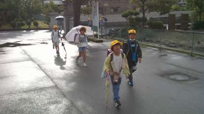 雨がぽつぽつ降っていましたが、元気な挨拶が交わされていました。最近、お辞儀をして挨拶をしている子や、「○○先生、おはようございます」と名前を呼んで挨拶してくれる子など、相手に伝わる気持ちのよい挨拶が広がってきていることがうれしいですね。