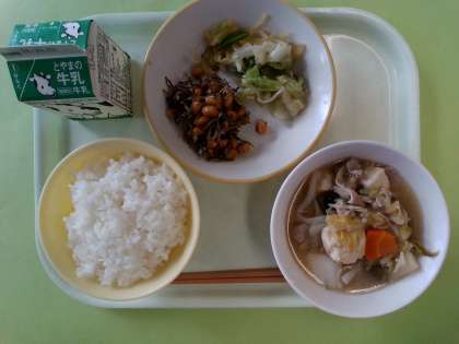 10月16日(水)今日の献立 公開日 2024/10/16 更新日 2024/10/16 給食室 ・ご飯 ・牛乳 ・小魚入りフライビーンズ ・あわせ和え ・白菜鍋 検食、異常なし。 朝夕が涼しくなり、鍋の美味しい季節がやってきました。 今日、6年生は4校合同交流学習です。外でお弁当を食べられているとよいのですが、天気はどうでしょうか。