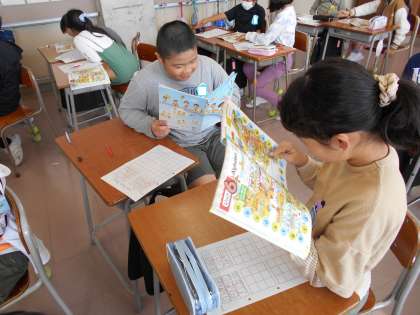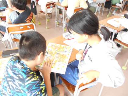 4年生 最近の様子 〜アルファベットをさがして〜 公開日 2024/10/17 更新日 2024/10/17 4年生 外国語活動ではアルファベットの小文字を学習しています。 友達とクイズを出し合って見付けるゲームを行ったりしています。