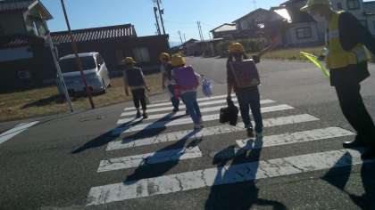 毎日、子どもたちの下校の様子を見守ってくださりありがとうございます。子どもたちは安心して帰っていきます。また、今日は、月に1度のスクールガードリーダーさんも見守りに来てくださいました。「こんにちは」、「ただいま」、「さようなら」、子どもたちは人なつこく、挨拶を交わしていました。