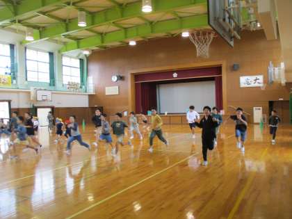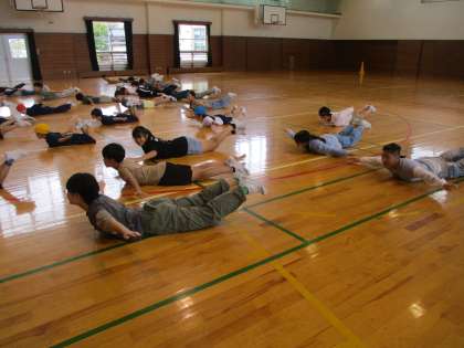 飛行機ポーズ、アザラシポーズで体幹を鍛えたり、ダッシュしたりしました。