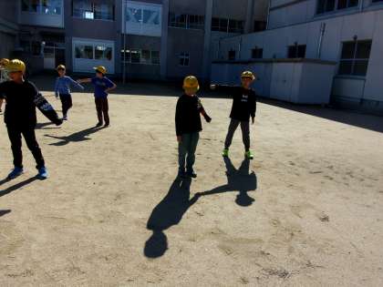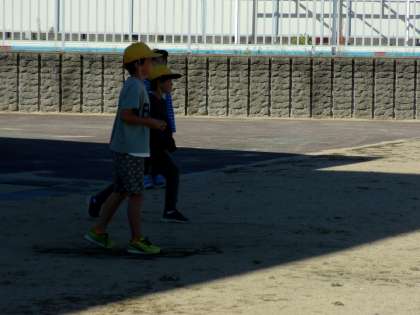 かげふみ遊びで日かげに入るとかげが・・・。かげは、どこに行ったのかな。