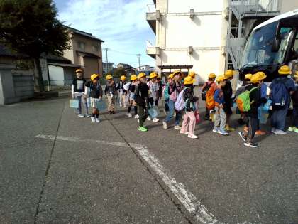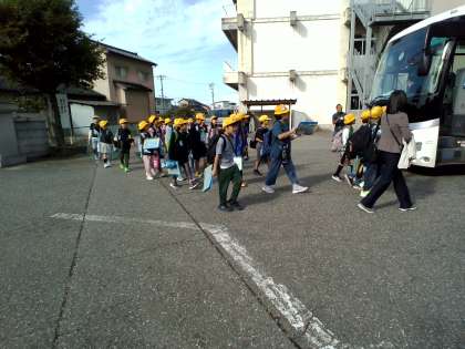 民俗民芸村と常願寺川公園へ行きます。 みんな、元気に出発!