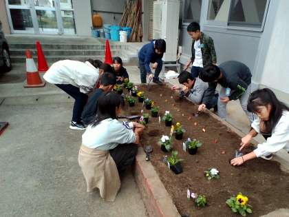 環境委員が活動をしていると、2年生も手伝ってくれました。